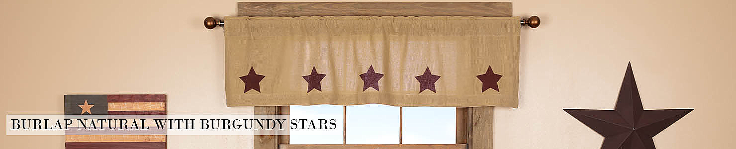 Home Collections Burlap Natural with Burgundy Stars 1-10 of 10 results for Burlap Natural with Burgundy Stars FILTER Sort by: Bestsellers SKU Featured Items Sale Price Bestsellers Most Viewed Burlap W/Burgundy Stencil Stars Valance 16x60 Item ID: 51179 Qty Available: Available $21.89 Burlap w/Burgundy Stencil Stars Tier Set of 2 L... Item ID: 25918 Qty Available: Available $32.95 Burlap w/Burgundy Stencil Stars Swag Set of 2 3... Item ID: 25917 Qty Available: Available $39.95 Burlap w/Burgundy Stencil Stars Tier Set of 2 L... Item ID: 25919 Qty Available: Available $40.95 Burlap w/Burgundy Stencil Stars Panel Set of 2 ... Item ID: 25913 Qty Available: Available $70.95 Burlap w/Burgundy Stencil Stars Prairie Swag Se... Item ID: 25916 Qty Available: Available $43.95 Burlap w/Burgundy Stencil Stars Short Panel Set... Item ID: 25914 Qty Available: Available $57.95 Burlap w/Burgundy Stencil Stars Valance 16x72 Item ID: 25920 Qty Available: Available $20.95 Burlap w/Burgundy Stencil Stars Prairie Short P... Item ID: 25915 Qty Available: Available $59.95 Burlap W/Burgundy Stencil Stars Prairie Long Pa... Item ID: 51178 Qty Available: Available $64.95