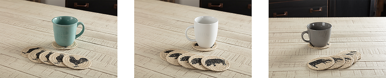 Home Kitchen & Tabletop Coasters 1-24 of 27 results for Coasters FILTER Sort by: Bestsellers SKU Featured Items Sale Price Bestsellers Most Viewed Cider Mill Jute Coaster Set of 6 Item ID: 45779 Qty Available: Unavailable $19.06 Tea Cabin Jute Coaster Set of 6 Item ID: 30590 Qty Available: Available $17.84 Great Falls Blue Jute Coaster Set of 6 Item ID: 67094 Qty Available: Available $20.95 Espresso Jute Coaster Set of 6 Item ID: 67238 Qty Available: Available $19.69 Farmhouse Jute Coaster Stencil Star Set of 6 Item ID: 30580 Qty Available: Available $22.04 Heritage Farms Crow Jute Coaster Set of 6 Item ID: 45784 Qty Available: Available $19.95 Ginger Spice Jute Coaster Set of 6 Item ID: 67124 Qty Available: Available $20.95 Cobblestone Jute Coaster Set of 6 Item ID: 67157 Qty Available: Available $19.95 Cumberland Stenciled Moose Jute Coaster Set of 6 Item ID: 51206 Qty Available: Available $19.90 Heritage Farms Star Jute Coaster Set of 6 Item ID: 45785 Qty Available: Available $17.95 Black & Tan Jute Coaster Set of 6 Item ID: 81315 Qty Available: Available $17.95 Burgundy Tan Jute Coaster Stencil Star Set of 6 Item ID: 30577 Qty Available: Available $20.95 Sawyer Mill Charcoal Pig Jute Coaster Set of 6 Item ID: 45805 Qty Available: Available $20.95 Burlap Natural Coaster Set of 12 Fringed 4x4 Item ID: 51162 Qty Available: Available $16.95 Kettle Grove Jute Coaster Stencil Star Set of 6 Item ID: 51237 Qty Available: Available $22.04 Sawyer Mill Charcoal Cow Jute Coaster Set of 6 Item ID: 45804 Qty Available: Available $19.95 Potomac Jute Coaster Stencil Star Set of 6 Item ID: 30585 Qty Available: Available $19.06 Sawyer Mill Charcoal Creme Jute Coaster Set of 6 Item ID: 81444 Qty Available: Available $17.80 Beckham Jute Coaster Set of 6 Item ID: 67044 Qty Available: Available $17.95 Colonial Star Jute Coaster Set of 6 Item ID: 67019 Qty Available: Available $20.95 Wyatt Stenciled Bear Jute Coaster Set of 6 Item ID: 51406 Qty Available: Available $20.45 Sawyer Mill Charcoal Poultry Jute Coaster Set of 6 Item ID: 45806 Qty Available: Available $20.95 Heritage Farms Jute Coaster Set of 6 Item ID: 81359 Qty Available: Unavailable $17.95 Pine Grove Jute Coaster Set of 6 Item ID: 81398 Qty Available: Available $17.95 12