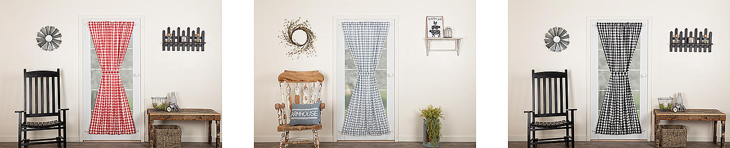Home Window & Door Door Panels 1-24 of 37 results for Door Panels FILTER Sort by: Bestsellers SKU Featured Items Sale Price Bestsellers Most Viewed Burlap Vintage Door Panel 72x40 Item ID: 51182 Qty Available: Available $35.95 Sawyer Mill Charcoal Plaid Door Panel 72x40 Item ID: 45876 Qty Available: Available $35.95 Kettle Grove Plaid Door Panel 72x40 Item ID: 51231 Qty Available: Available $35.95 Black Star Door Panel with Attached Scalloped L... Item ID: 51139 Qty Available: Available $55.95 Tobacco Cloth Khaki Door Panel 72x40 Item ID: 51391 Qty Available: Unavailable $35.95 Black Check Door Panel 72x40 Item ID: 51135 Qty Available: Available $39.95 Sawyer Mill Blue Plaid Door Panel 72x40 Item ID: 51279 Qty Available: Available $35.95 Annie Buffalo Red Check Door Panel 72x40 Item ID: 51124 Qty Available: Available $35.95 Abilene Star Door Panel with Attached Valance 7... Item ID: 50804 Qty Available: Available $60.95 Burgundy Star Door Panel with Attached Scallope... Item ID: 51153 Qty Available: Available $60.95 Cider Mill Plaid Door Panel 72x40 Item ID: 80328 Qty Available: Available $37.95 Simple Life Flax Natural Door Panel 72x40 Item ID: 51353 Qty Available: Available $35.95 Annie Buffalo Grey Check Door Panel 72x40 Item ID: 51106 Qty Available: Available $39.95 Annie Buffalo Portabella Check Door Panel 72x40 Item ID: 69927 Qty Available: Available $35.95 Burlap Antique White Door Panel 72x40 Item ID: 51201 Qty Available: Available $35.95 Burgundy Check Door Panel 72x40 Item ID: 51149 Qty Available: Unavailable $35.95 Sawyer Mill Blue Ticking Stripe Door Panel 72x40 Item ID: 51271 Qty Available: Available $35.95 Sawyer Mill Black Ticking Stripe Door Panel 72x40 Item ID: 80479 Qty Available: Available $35.95 Cedar Ridge Door Panel 72x40 Item ID: 53713 Qty Available: Available $35.95 Annie Buffalo Black Check Door Panel 72x40 Item ID: 51102 Qty Available: Available $35.95 Sawyer Mill Red Plaid Door Panel 72x40 Item ID: 51336 Qty Available: Available $35.95 Sawyer Mill Charcoal Ticking Stripe Door Panel ... Item ID: 51301 Qty Available: Available $35.95 Sawyer Mill Red Ticking Stripe Door Panel 72x40 Item ID: 51328 Qty Available: Available $35.95 Kettle Grove Door Panel with Attached Applique ... Item ID: 51245 Qty Available: Available $55.95 12