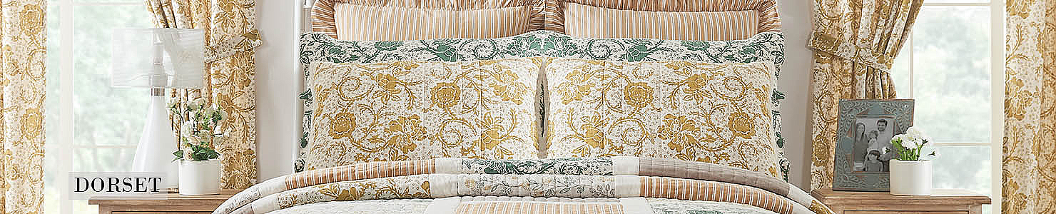 Home Collections Dorset 1-24 of 84 results for Dorset FILTER Sort by: Bestsellers SKU Featured Items Sale Price Bestsellers Most Viewed Dorset Gold Floral Standard Sham 21x27 Item ID: 81194 Qty Available: Available $24.95 Dorset Gold Floral King Sham 21x37 Item ID: 81193 Qty Available: Available $28.95 Dorset Gold Floral Short Panel Set of 2 63x36 Item ID: 81200 Qty Available: Available $70.95 Dorset Green Floral Panel 96x50 Item ID: 81223 Qty Available: Unavailable $38.45 Dorset Navy Floral King Sham 21x37 Item ID: 81243 Qty Available: Available $27.95 Dorset Navy Floral Panel Set of 2 84x40 Item ID: 81249 Qty Available: Available $99.95 Dorset Gold Floral Valance 16x72 Item ID: 81208 Qty Available: Available $27.95 Dorset Green Floral Valance 16x60 Item ID: 81232 Qty Available: Available $23.95 Dorset Navy Floral Standard Sham 21x27 Item ID: 81244 Qty Available: Available $24.95 Dorset Green Floral Standard Sham 21x27 Item ID: 81219 Qty Available: Available $24.95 Dorset Gold Floral Ruffled Standard Pillow Case... Item ID: 81196 Qty Available: Available $27.95 Dorset Green Floral Short Panel Set of 2 63x36 Item ID: 81225 Qty Available: Available $70.95 Dorset Navy Floral King Quilt 105Wx95L Item ID: 81236 Qty Available: Available $160.95 Dorset Navy Floral Queen Quilt 90Wx90L Item ID: 81237 Qty Available: Available $139.95 Dorset Navy Floral Ruffled Standard Pillow Case... Item ID: 81246 Qty Available: Available $27.95 Dorset Navy Floral Valance 16x60 Item ID: 81257 Qty Available: Unavailable $20.45 Dorset Gold Floral Prairie Short Panel Set of 2... Item ID: 81202 Qty Available: Available $59.95 Dorset Gold Floral Ruffled King Pillow Case Set... Item ID: 81195 Qty Available: Available $30.95 Dorset Green Floral Valance 16x72 Item ID: 81233 Qty Available: Available $27.95 Dorset Navy Floral Prairie Short Panel Set of 2... Item ID: 81252 Qty Available: Available $59.95 Dorset Gold Floral King Quilt 105Wx95L Item ID: 81186 Qty Available: Available $160.95 Dorset Gold Floral Luxury King Quilt 120WX105L Item ID: 81185 Qty Available: Available $209.95 Dorset Gold Floral Queen Quilt 90Wx90L Item ID: 81187 Qty Available: Available $139.95 Dorset Gold Floral Twin Quilt 68Wx86L Item ID: 81188 Qty Available: Available $121.95 1234