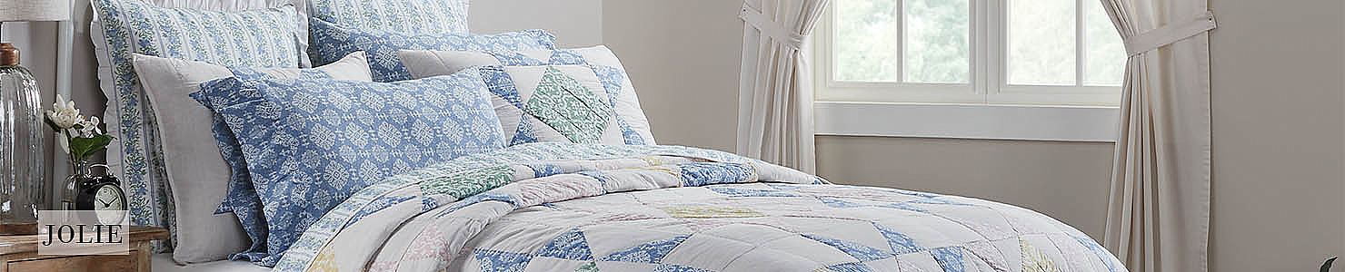 Home Collections Jolie 1-11 of 11 results for Jolie FILTER Sort by: Bestsellers SKU Featured Items Sale Price Bestsellers Most Viewed Jolie Standard Sham 21x27 Item ID: 81161 Qty Available: Available $29.95 Jolie King Sham 21x37 Item ID: 81160 Qty Available: Available $33.95 Jolie Queen Quilt 90Wx90L Item ID: 81154 Qty Available: Available $208.95 Jolie King Quilt 105Wx95L Item ID: 81153 Qty Available: Available $219.95 Jolie Ruffled Standard Pillow Case Set of 2 21x... Item ID: 81163 Qty Available: Available $27.95 Jolie Fabric Euro Sham 26x26 Item ID: 81159 Qty Available: Available $27.95 Jolie Queen Bed Skirt 60x80x16 Item ID: 81157 Qty Available: Available $54.95 Jolie Twin Quilt 68Wx86L Item ID: 81155 Qty Available: Available $162.95 Jolie Ruffled King Pillow Case Set of 2 21x36+4 Item ID: 81162 Qty Available: Available $31.95 Jolie King Bed Skirt 78x80x16 Item ID: 81156 Qty Available: Available $54.95 Jolie Twin Bed Skirt 39x76x16 Item ID: 81158 Qty Available: Available $46.95