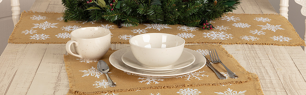 Home Christmas Seasonal Tabletop & Kitchen 1-22 of 50 results for Seasonal Tabletop & Kitchen FILTER Sort by: Bestsellers SKU Featured Items Sale Price Bestsellers Most Viewed Jonathan Plaid Ruffled Runner 13x36 Item ID: 42414 Qty Available: Unavailable $13.95 Emmie Red Runner 13x48 Item ID: 42525 Qty Available: Available $18.85 Hollis Runner 13x36 Item ID: 42537 Qty Available: Unavailable $14.45 Jonathan Plaid Ruffled Placemat Set of 6 12x18 Item ID: 42277 Qty Available: Unavailable $21.95 Snowflake Burlap Natural Snowflake Kisses Tea T... Item ID: 57390 Qty Available: Unavailable $19.90 Sawyer Mill Charcoal Plow & Corn Muslin Unb... Item ID: 56759 Qty Available: Unavailable $18.95 Tannen Runner 13x36 Item ID: 28851 Qty Available: Unavailable $12.45 Snowflake Burlap Natural Let It Snow Tea Towel ... Item ID: 57389 Qty Available: Unavailable $17.20 Tannen Placemat Set of 6 12x18 Item ID: 28850 Qty Available: Unavailable $19.95 Hollis Runner 13x48 Item ID: 42538 Qty Available: Unavailable $17.70 Dyani Silver Placemat Set of 6 12x18 Item ID: 32225 Qty Available: Unavailable $34.95 Emmie Red Placemat Set of 6 12x18 Item ID: 42511 Qty Available: Unavailable $24.95 Jonathan Plaid Ruffled Runner 13x72 Item ID: 42416 Qty Available: Unavailable $20.45 Emmie Red Runner 13x36 Item ID: 42524 Qty Available: Available $16.95 Jonathan Plaid Ruffled Runner 13x48 Item ID: 42415 Qty Available: Unavailable $13.95 Dyani Gold 13" Tablemat Set of 6 Item ID: 32232 Qty Available: Unavailable $32.45 Tannen Runner 13x48 Item ID: 28852 Qty Available: Unavailable $15.95 Nowell Natural Runner 13x48 Item ID: 28827 Qty Available: Unavailable $13.95 Sawyer Mill Holiday Reindeer And Recipes Unblea... Item ID: 63466 Qty Available: Available $17.95 Dyani Gold Placemat Set of 6 12x18 Item ID: 32231 Qty Available: Unavailable $34.95 Dyani Silver 13" Tablemat Set of 6 Item ID: 32226 Qty Available: Unavailable $35.62 Hollis Runner 13x72 Item ID: 42539 Qty Available: Unavailable $20.45 123